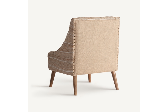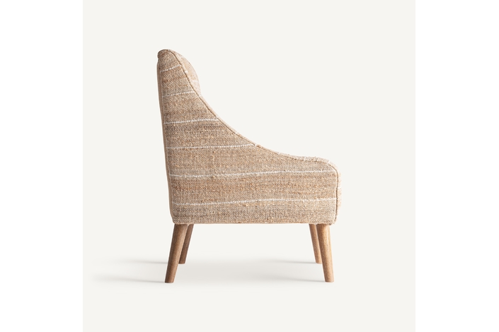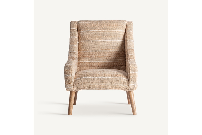 El Sillón Chateris de VICAL reinterpreta el estilo clásico con un aire acogedor. Su tapizado en yute beige y su estructura de mango realzan su carácter artesanal, convirtiéndolo en una pieza ideal para rincones de lectura o espacios de descanso.