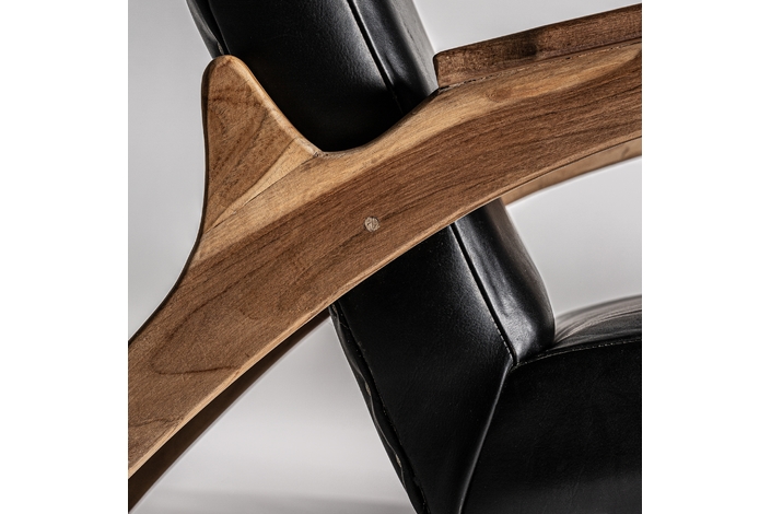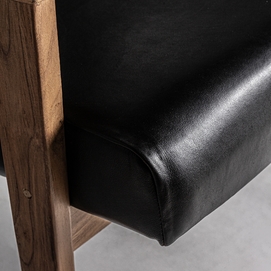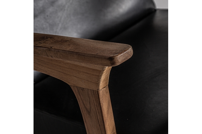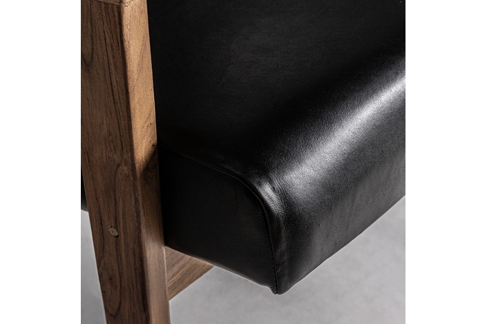 El Sillón Crans de VICAL home, con sus 67x90x89cm, es la personificación de la elegancia moderna. La madera de teka proporciona un contraste perfecto con el lujoso cuero negro, ofreciendo una pieza que es tanto un placer visual como un santuario de confort. Este sillón de madera y cuero negro es una adición imprescindible para interiores sofisticados.