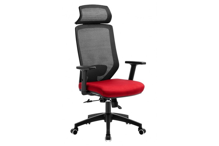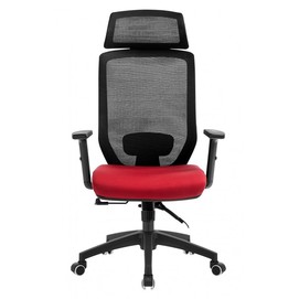Sillón de oficina, negro, gas, malla negra y tejido rojo. Brazos regulables en altura. Otros colores disponibles