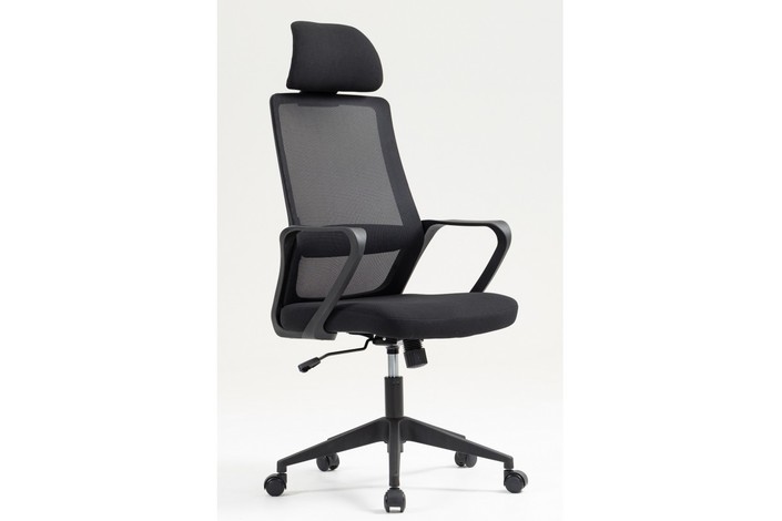 Sillón de oficina, basculante, respaldo y asiento en tejido negro.