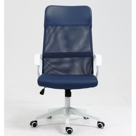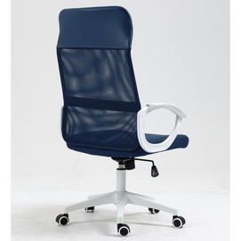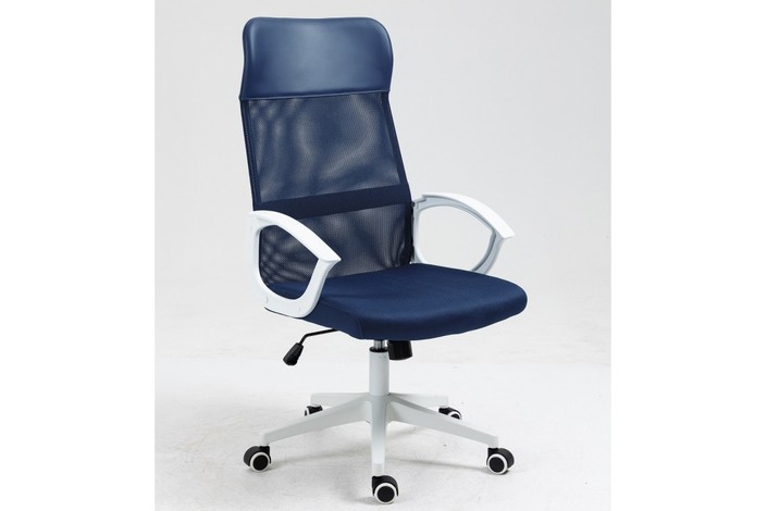 -Tapizado del respaldo en malla de color azul oscuro, cabezal en similpiel azul oscuro, asiento en tejido acrílico azul oscuro