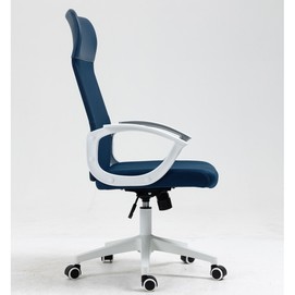 Sillón de oficina, blanco, gas, basculante, malla y asiento azul oscuro. Otros colores disponibles