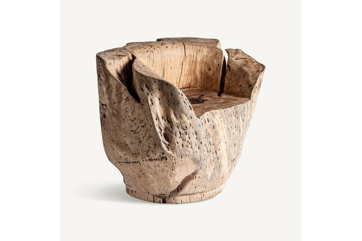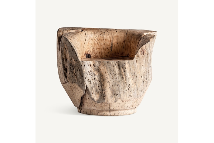 Sillón dharm, en color natural envejecido, de estilo étnico. Fabricado en madera de tamarindo.