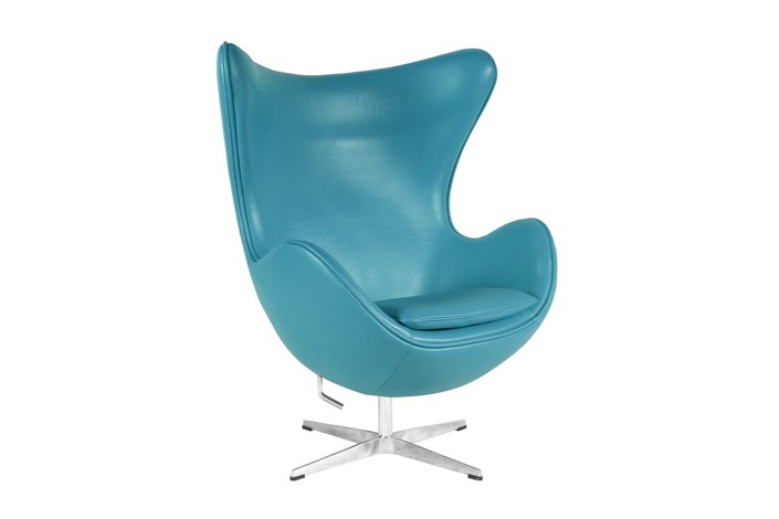 Sillón de diseño, giratorio, base y columna cromada, mecanismo basculante, tapizado en similpiel de color turquesa. Otros colores disponibles.