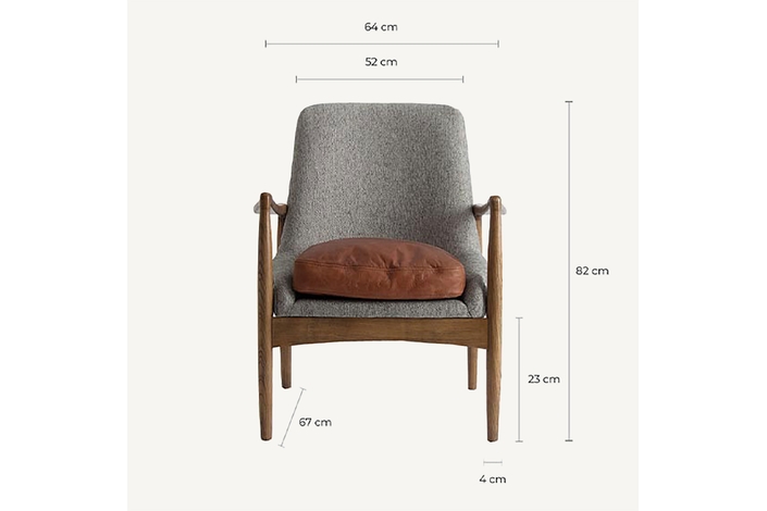 Evocando tranquilidad nórdica, el Sillón Elati de VICAL home, de 67x67x84cm. Su construcción en madera de abeto y la dualidad cromática gris/natural se fusionan para crear un espacio donde la comodidad y el estilo coexisten en armonía. El sillón nórdico es la elección perfecta para quienes buscan simplicidad y confort.