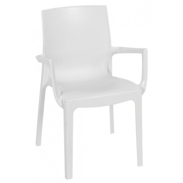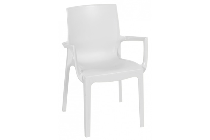 Sillón de diseño, apilable, polipropileno inyectado de color blanco. Tratamiento anti rayos UV. Uso en exterior e interior. Otros colores disponibles.