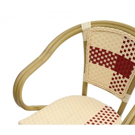 -Armazón de tubo de aluminio de 1,5 mm de espesor, muy reforzada, acabado bambú, ratán sintético de colores beige y rojo combinados - tal cual imagen -