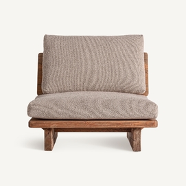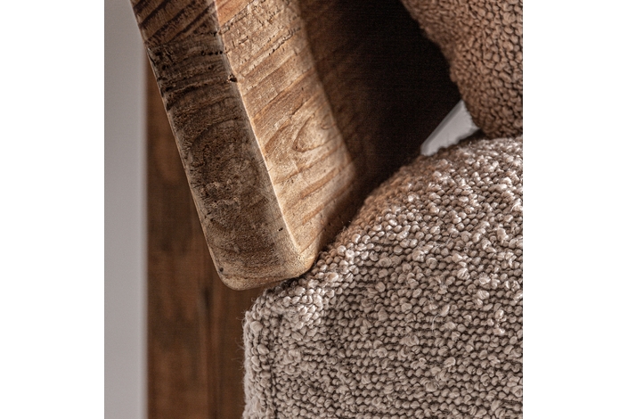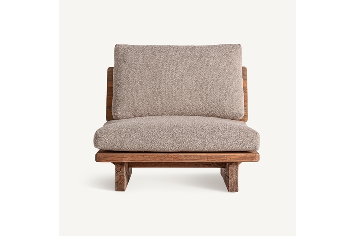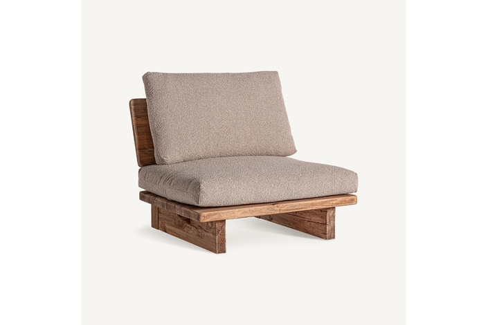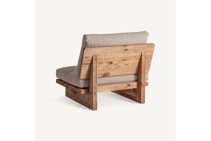 Sillón givry, en color natural, de estilo contemporáneo. Fabricado en madera de pino reciclado, combinado con poliéster y espuma.