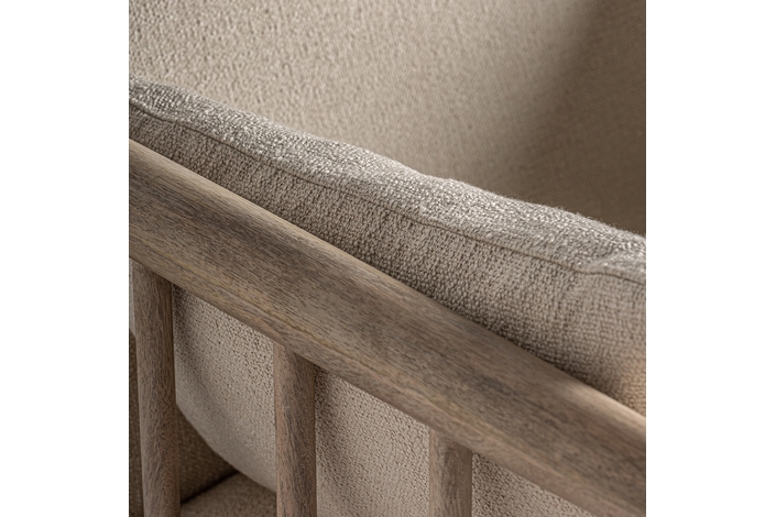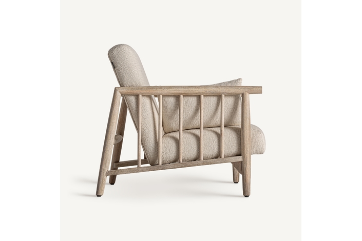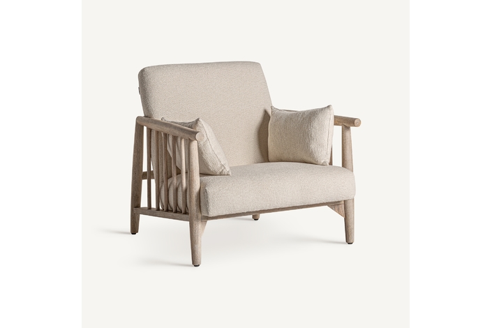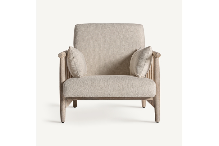 Sillón grebin, en color blanco roto, de estilo contemporáneo. Fabricado en madera abedul, combinado con algodón.