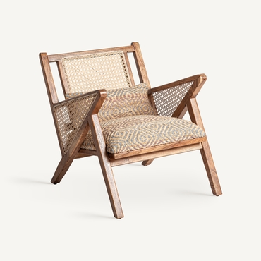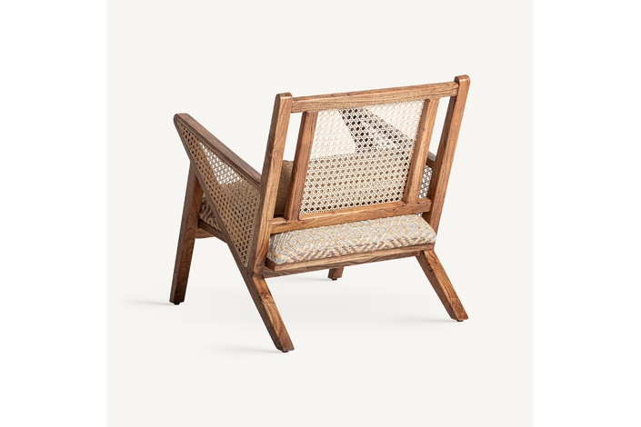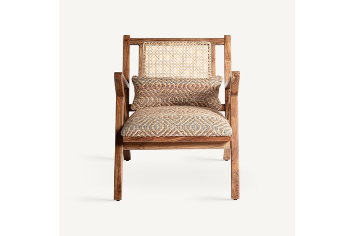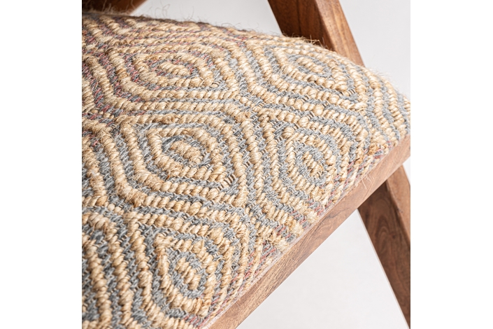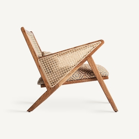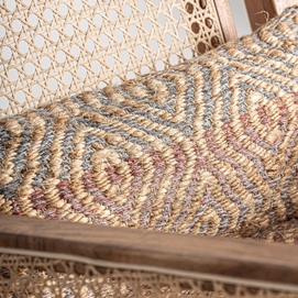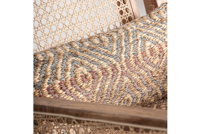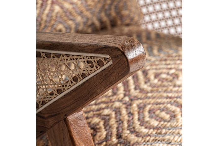 Sillón hickori, en color marrón, de estilo boho. Fabricado en madera de mango, combinado con algodón y yute. Producto desenfundable.