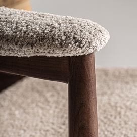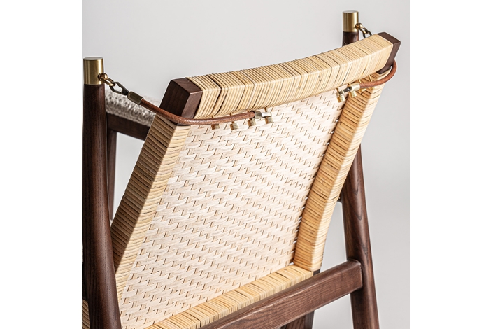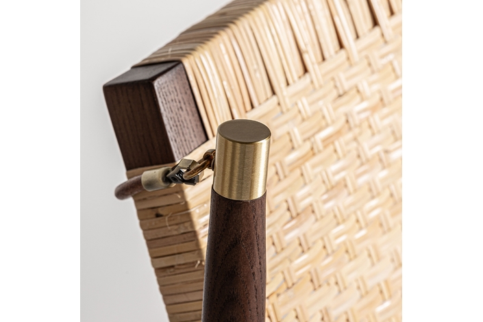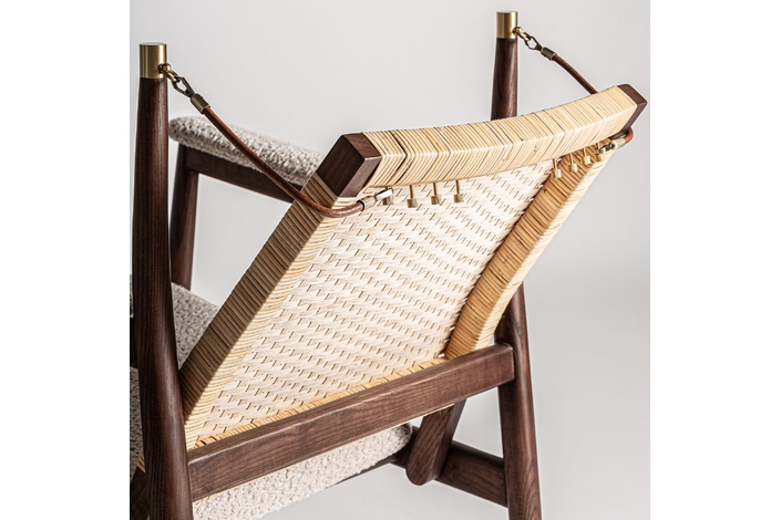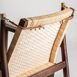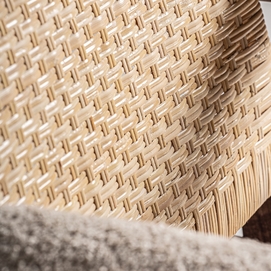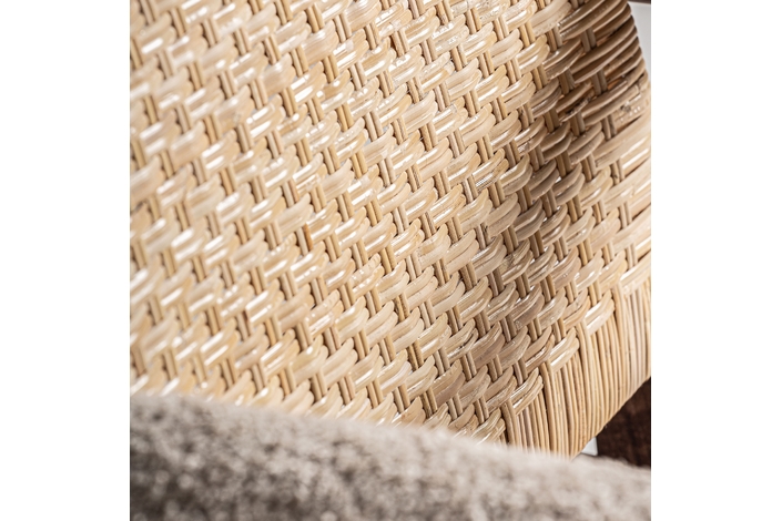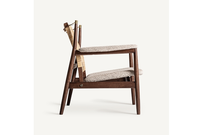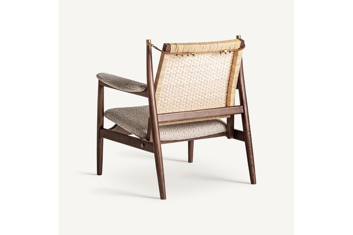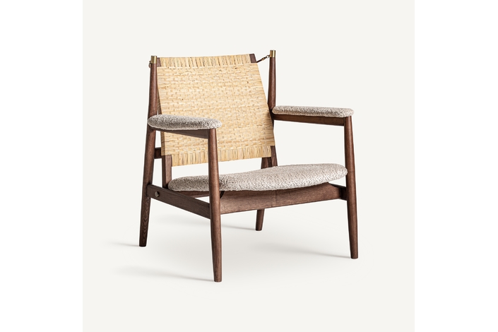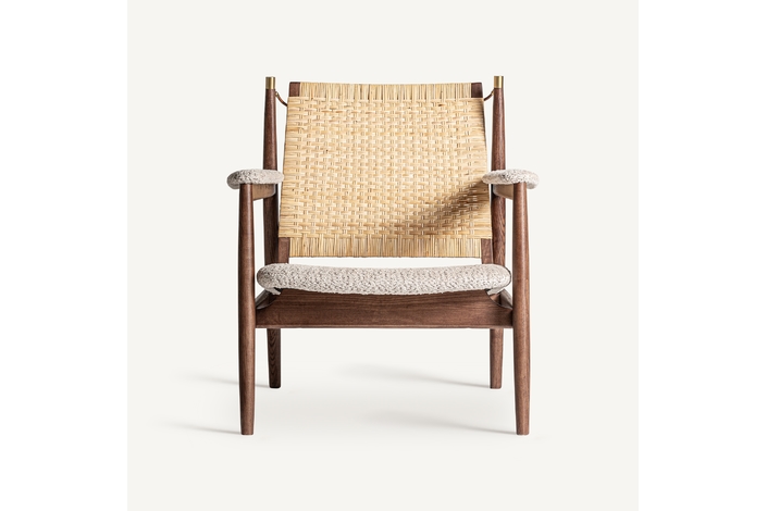 Sillón hunxe, en color tonos en marrón, de estilo boho. Fabricado en madera de fresno, combinado con ratán.