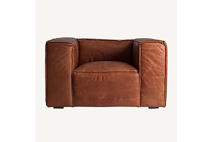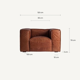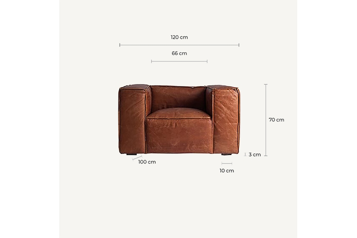 El Sillón Kurza de VICAL home es sinónimo de lujo y confort. Con un tamaño generoso de 118x98x68cm, esta butaca grande está confeccionada en madera de abeto y cuero marrón de alta calidad, ofreciendo una experiencia de asiento inigualable. Es la pieza perfecta para quienes no renuncian al estilo ni al confort.