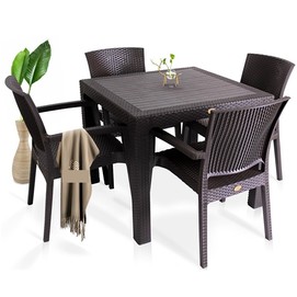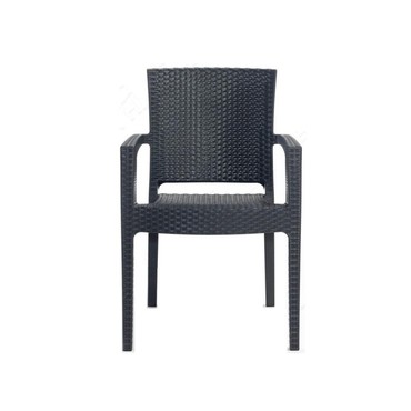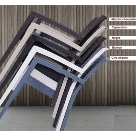 Sillón apilable, imitación a rattán, polipropileno negro. Uso en exterior e interior. Otros colores disponibles. Mesas a juego