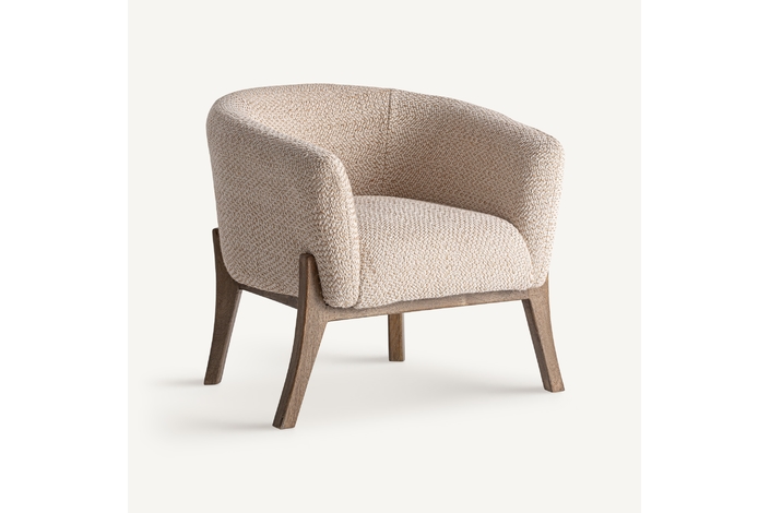 Sillón Liermo de estilo contemporáneo, fabricado en yute en color blanco roto, combinado con madera de mango en color marrón.