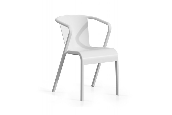 Sillón de diseño, apilable, polipropileno reforzado con fibra de vidrio de color blanco. Tratamiento anti rayos UV. Uso en exterior e interior. Otros colores disponibles.