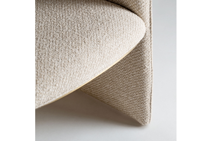 Sillón mayun, de estilo art deco. Fabricado en poliéster, en color beige, combinado con hierro.