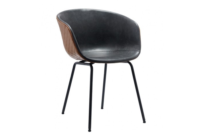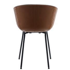 -Asiento y respaldo tapizados en similpiel, exteriores laterales con costuras de rombos en color cuero marrón, interior en similpiel negro