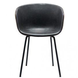 Sillón de diseño, armazón metálico con acabado epoxi negro, asiento y respaldo tapizados en similpiel - exterior en color cuero marrón de rombos - interior - en negro. Taburete a juego