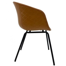 -Asiento y respaldo tapizados en similpiel de color marrón claro, exteriores laterales del sillón con costuras de rombos