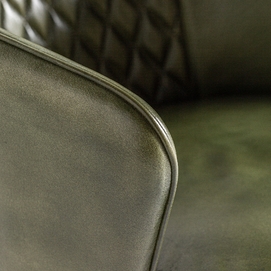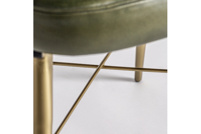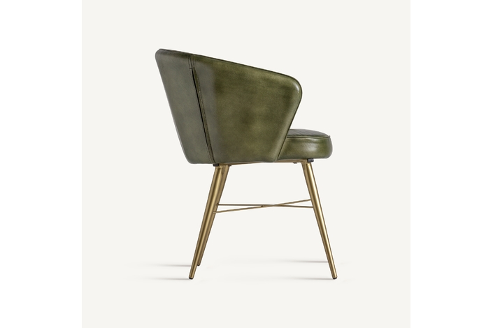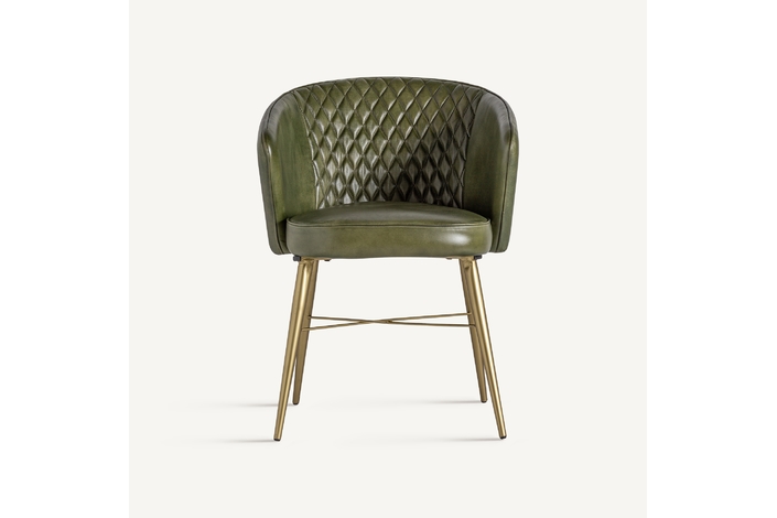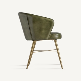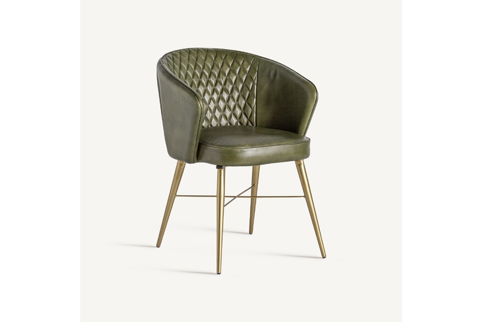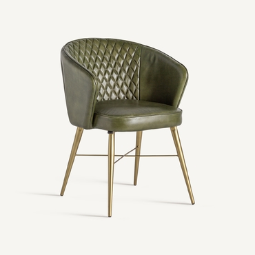 Deleita tus sentidos con el Sillón Muncie de VICAL home, una declaración de sofisticación y confort. Este sillón, de 60x61x78cm, presenta un lujoso tapizado en piel de color verde/oro, complementado por una estructura resistente de madera de pino. La silla de piel verde es una pieza que promete convertirse en el centro de atención, ofreciendo una experiencia estética y de comodidad sin igual.