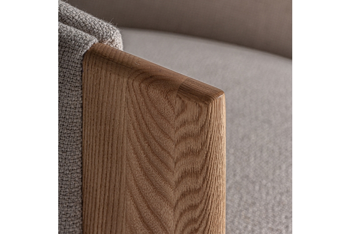 La colección Nara, fruto de la colaboración entre Francesc Rifé y VICALDESIGN, se caracteriza por un diseño minimalista que rinde homenaje a la belleza de la madera y la precisión en las formas. El sillón Nara es una pieza que encarna a la perfección estos valores, combinando líneas suaves y contornos curvos que proporcionan un equilibrio entre estética y comodidad. Fabricado en madera de roble, su respaldo y asiento ofrecen un soporte ergonómico, mientras que las patas, de estructura sólida, aportan estabilidad y una presencia contundente sin perder la ligereza visual.