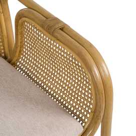Material: ratán. Altura asiento: 50cm. Altura respaldo: 30cm. Altura reposabrazos desde el suelo: 67cm. Ancho asiento: 47cm. Profundo asiento: 48cm. No precisan montaje. Cojín: desenfundable con cremallera.