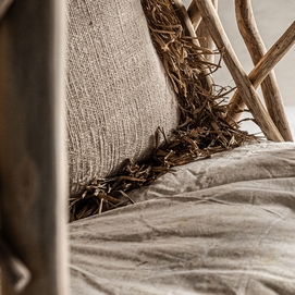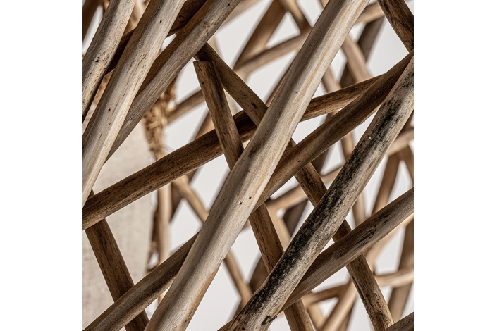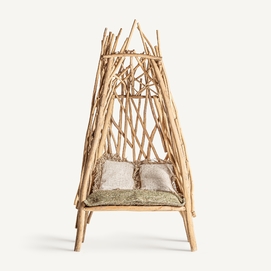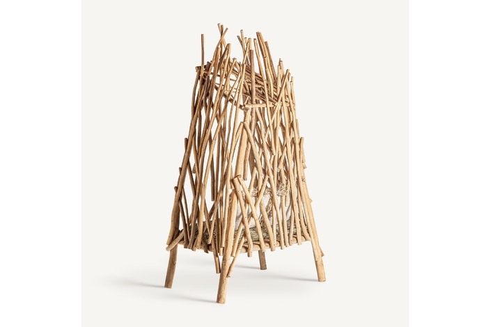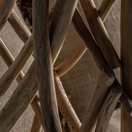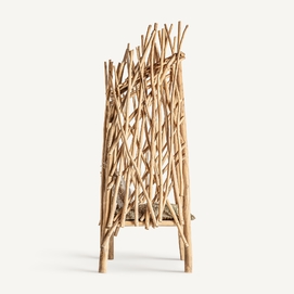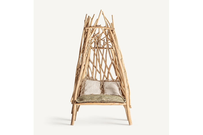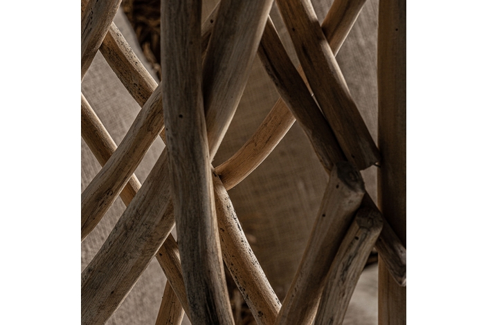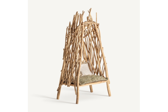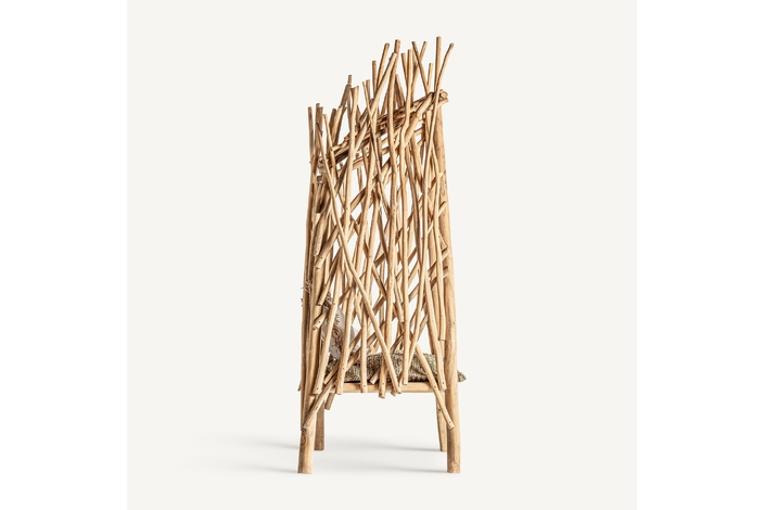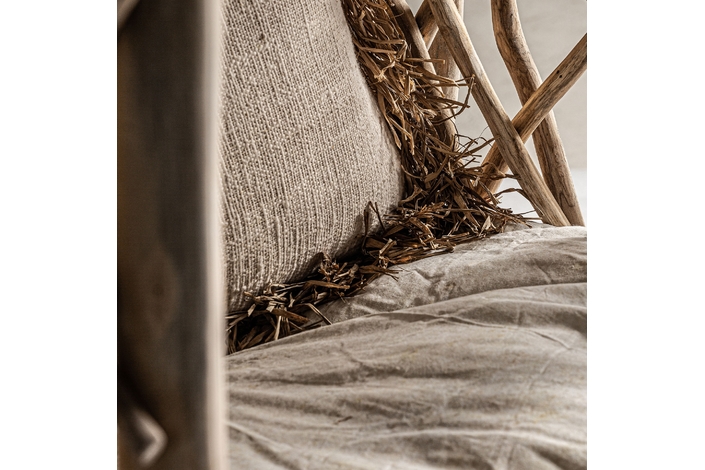 Sillón netia, en color natural, de estilo étnico. Fabricado en madera de teka, combinado con fibra natural.