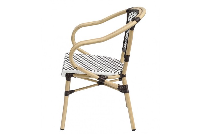 Sillón PARIS, apilable, aluminio, ratán blanco y marrón