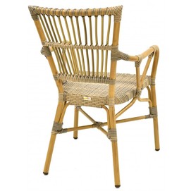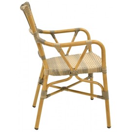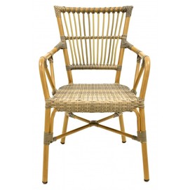 Sillón PAROS, apilable, aluminio, ratán marrón y gris