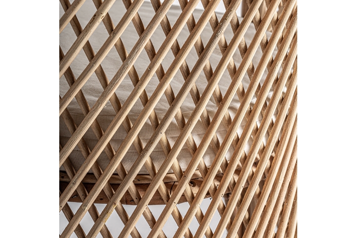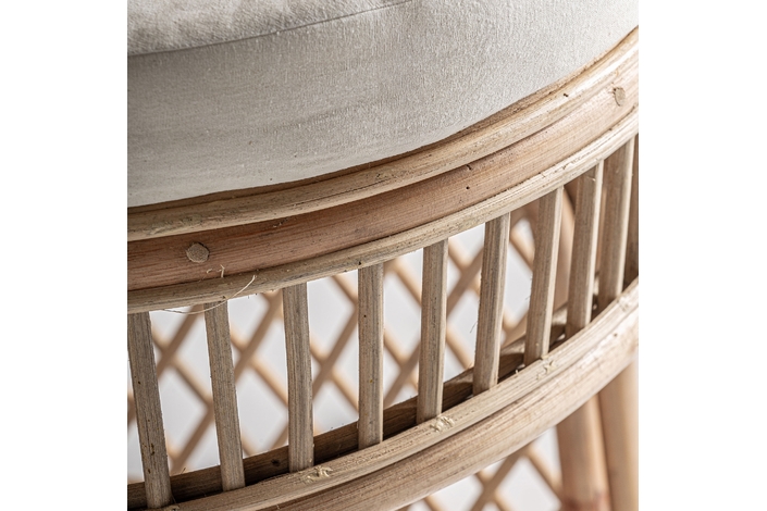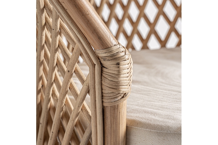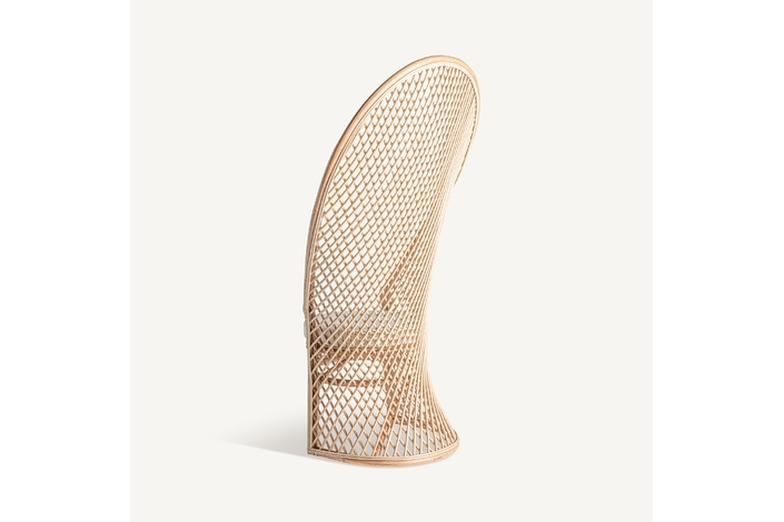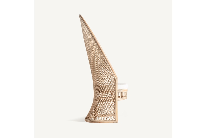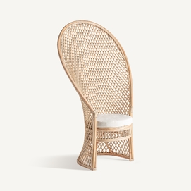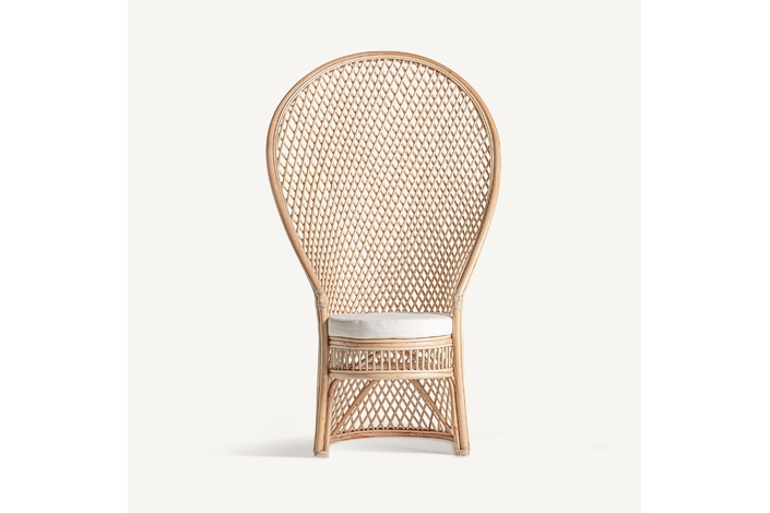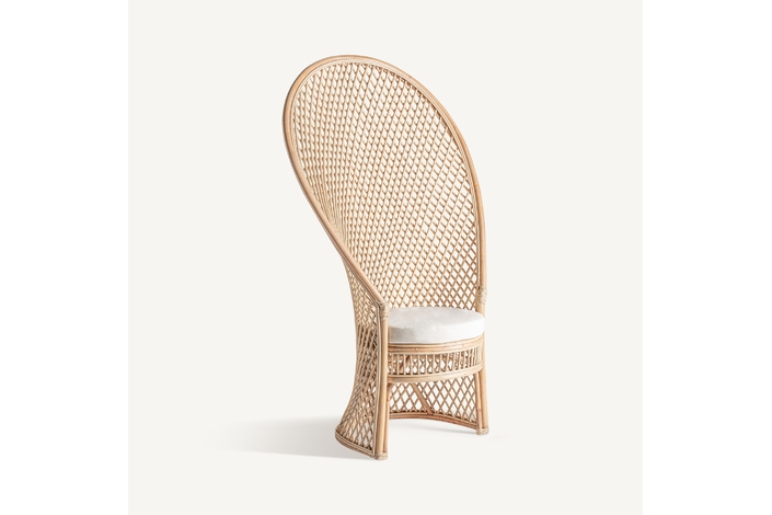 Sillón Peacock de estilo boho, fabricado en ratán en color marrón claro.