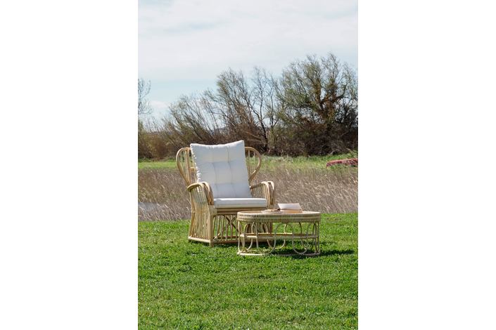 Dimensiones (cm) Longitud 80  |  Fondo 69  |  Altura 85 Peso neto producto (kg) 7,50 Material Ratan  |  Ratan