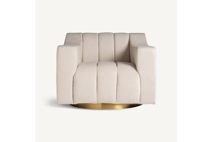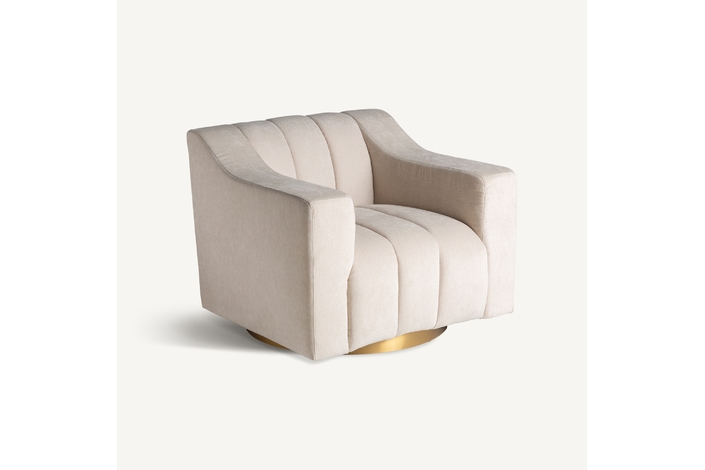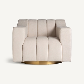 Sillón scuol, en color blanco/oro, de estilo art deco. Fabricado en madera de pino, combinado con acero y poliéster.