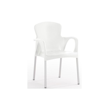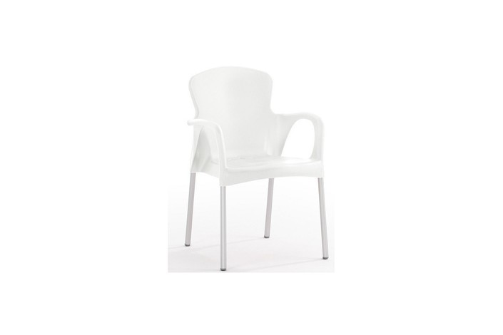 Sillón apilable, aluminio, polipropileno blanco. Uso en exterior e interior. Otros colores disponibles.
