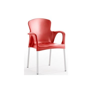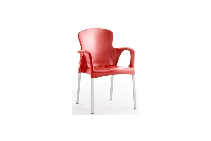 Sillón apilable, aluminio, polipropileno rojo. Uso en exterior e interior. Otros colores disponibles