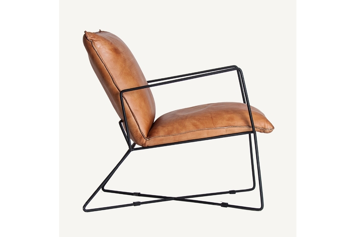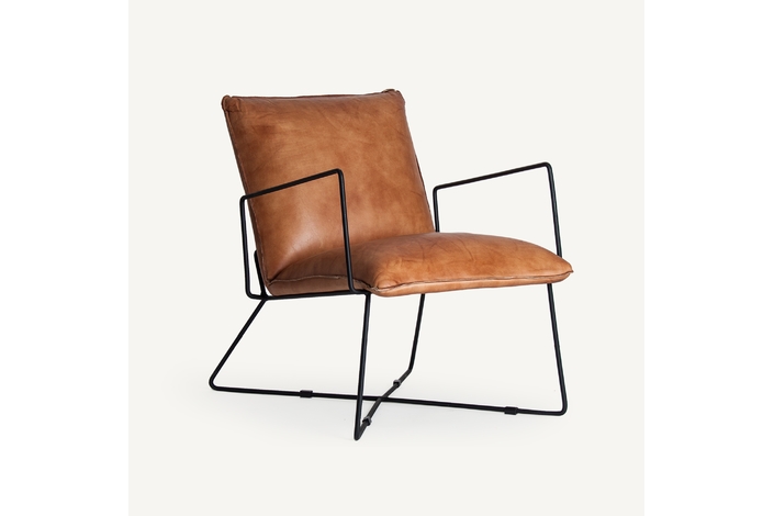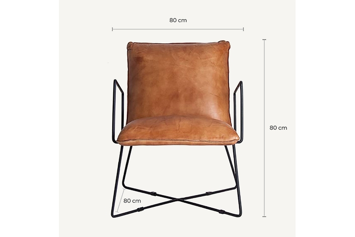 Con una estética que resuena con la robustez industrial, el Sillón Seney de VICAL home, de 60x80x76cm, presenta un diseño atractivo en cuero marrón e hierro. Este sillón de cuero y hierro no solo añade un toque audaz a su espacio, sino que también promete durabilidad y una comodidad que acoge en cada sentada.