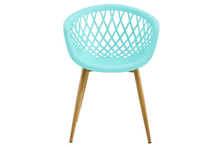 -Base de metal con acabado imitación madera, asiento y respaldo de polipropileno inyectado en color verde pastel