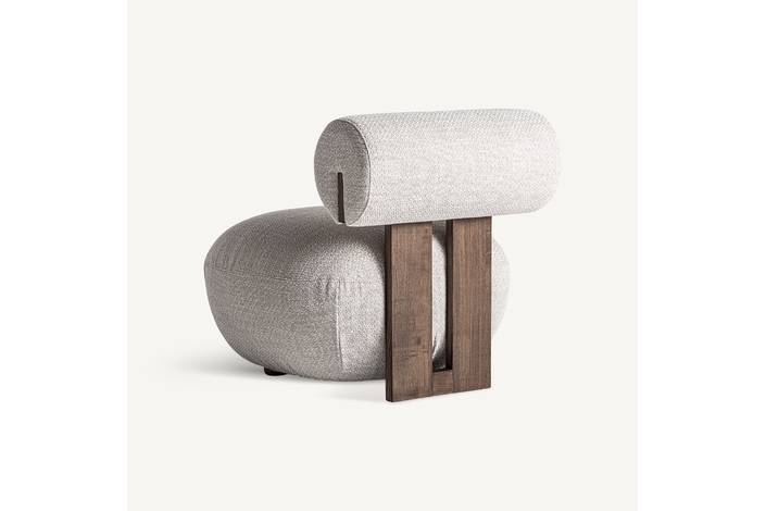 Sillón tielt, de estilo contemporáneo. Fabricado en madera de fresno, en color blanco roto, combinado con espuma y poliéster.