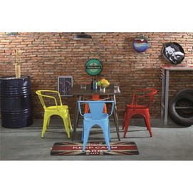 Sillón de diseño, estructura de acero, pintado en rojo. Uso en interiores o exteriores. Otros colores disponibles. Mesa, silla y taburete a juego.