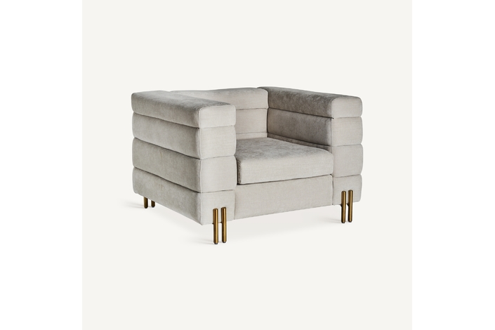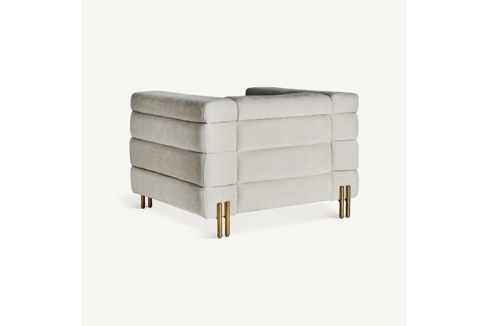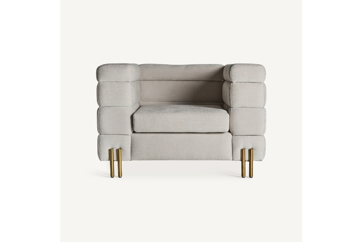 Sillón torvik, en color blanco roto, de estilo art deco. Fabricado en algodón, combinado con acero. Producto desmontable, desenfundable.