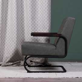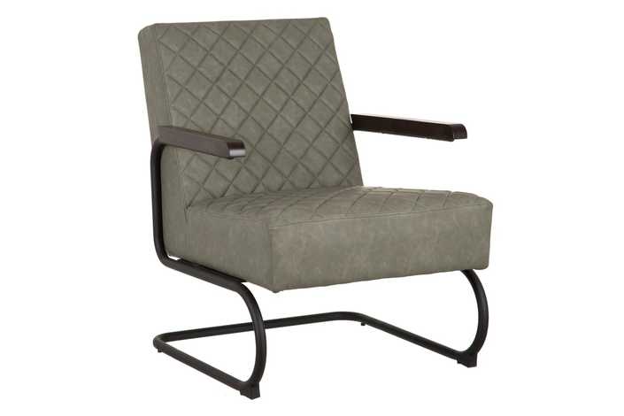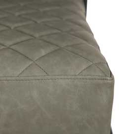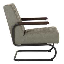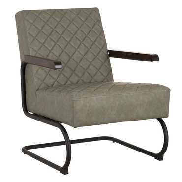Material: 100% poliuretano - tono verde grisáceo. Gramaje: 145g/m2 Relleno: algodón - foam Densidad: 28Kgr./m3 Estructura: madera conglomerada Patas: metal (hierro) negro. Altura asiento: 45cm. Profundidad asiento: 52cm. Altura respaldo: 50cm. Altura patas: 27cm. Altura reposabrazos desde el suelo: 60cm. Precisa montaje. No apilable. Cumple normativa: EN12520:2015
