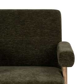 Material tejido: poliéster. Estructura: Plywood. Relleno: Foam,PU. Densidad 30kg/m3. Gramaje:450gr/m2. Patas: Madera de caucho. Altura asiento: 42cm. Altura patas: 27.5cm. Altura de los brazos:23cm. Máximo peso soportado: 200kg. No desenfundable. Las patas requieren montaje.