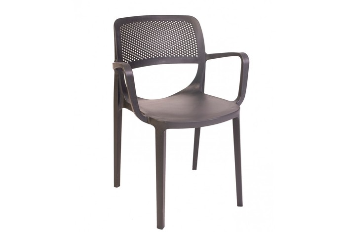 Sillón apilable, polipropileno antracita. Uso en exterior e interior. Otros colores disponibles. Taburete a juego