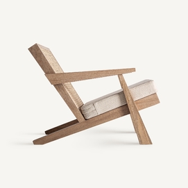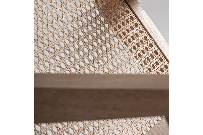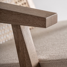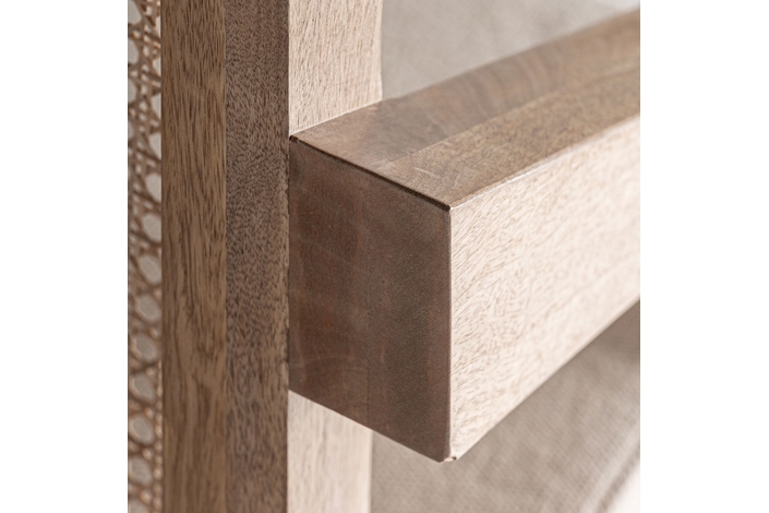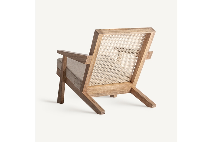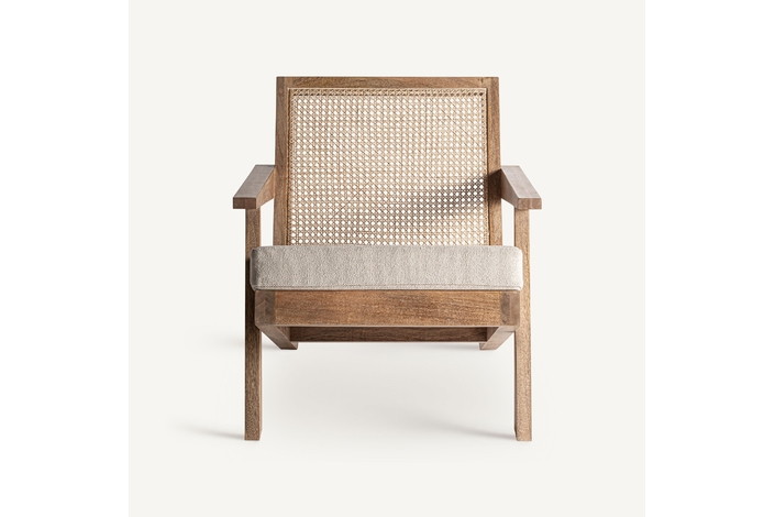 Sillón wesweil, de estilo art deco. Fabricado en madera de mango, en color marrón, combinado con madera dm, en color beige.