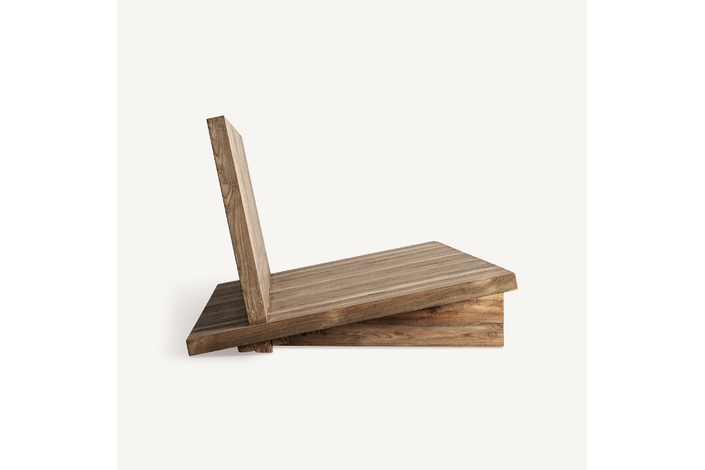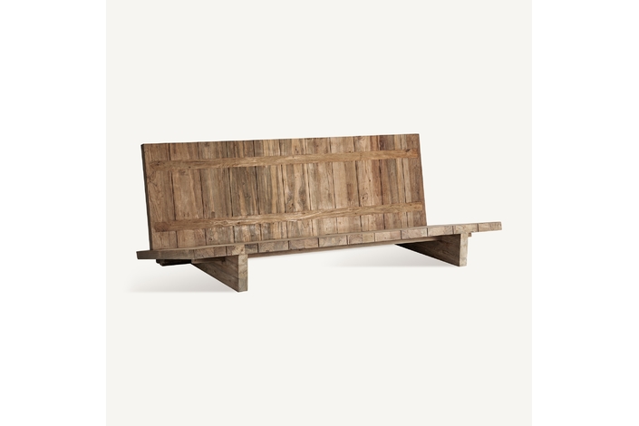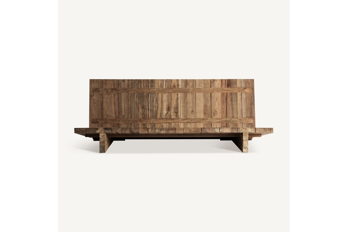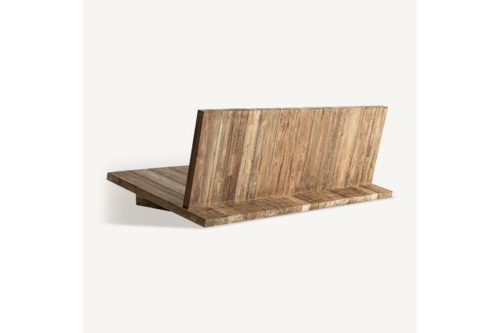 Sofá, fabricado en madera de teka reciclada en color marrón, combinado con polipropileno reciclado en color crema y espuma.
