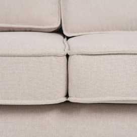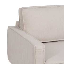 Tejido: 94% poliéster - 6% Nylon Patas de metal. Relleno: algodón. Materiales: Madera de eucalipto. Medidas del asiento: 72x78x14 cm Medidas del respaldo:70x20x47cm. Altura asiento: 47cm. Ancho del brazo: 10cm. Altura brazo: 63cm. Altura patas 17cm. Ancho asiento: 140cm. Profundo asiento: 62cm. Altura respaldo: 47cm. Patas para montar. Cojines desenfundables con cremallera para su lavado. Instrucciones de lavado: * se puede limpiar en seco. * para mánchas de agua, frotar con un trapo limpio o secar con el secardor. * para otro tipo de manchas frotar con un trapo utilizando detergente neutro, no utilizar cloros. Peso máximo soportado por asiento: 150kgr. Cumple con la normativa UNE-EN 12520:2015.