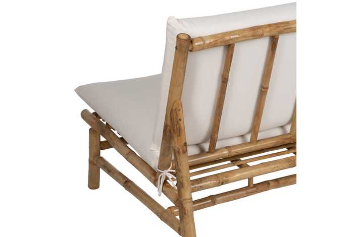 Material: bambú - tejido 100% poliéster Para montar. Desenfundable. Profundo asiento: 60cm. Altura asiento: 42.5cm. Altura respaldo: 48cm.