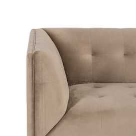 Material: 100% poliéster, terciopelo Estructura: estructura madera de caucho - patas madera de eucalipto. Gramaje: 260g/m2. Patas: madera Relleno: foam, densidad asiento y respaldo: 25-28Kg./m3 Densidad parte trasera: 25Kg./m3. No desenfundable - no lavable. Máximo peso autorizado: 300Kgr. Altura asiento: 43cm. Altura pata: 19.5cm. Profundidad asiento: 58cm. Ancho asiento: 115cm. Altura reposabrazos (desde el suelo):72cm. Altura reposabrazos desde asiento: 36cm. Altura respaldo: 36cm. Patas para montar. Las posibles sombras o marcas en el tejido son debidas al embalaje de las piezas. Desapareciendo fácilmente con la aplicación de vapor.