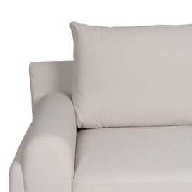 Material: tejido - metal Composición tejido: 93% poliéster - 7 nilón Estructura: madera conglomerada Altura asiento: 44cm. Altura patas: 14,5cm. Altura respaldo: 50cm. Altura reposabrazos desde el asiento: 18cm. Profundo asiento: 60cm. Ancho asiento: 170cm. 2 cojines desenfundables con cremallera. Cumple normativa: