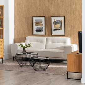 Material: tejido - metal Composición tejido: 93% poliéster - 7 nilón Estructura: madera conglomerada Altura asiento: 40cm. Altura patas: 14,5cm. Altura respaldo: 50cm. Altura reposabrazos desde el asiento: 20cm. Profundo asiento: 60cm. Ancho asiento: 168cm. No desenfundable. Cumple normativa: