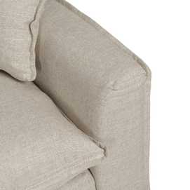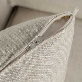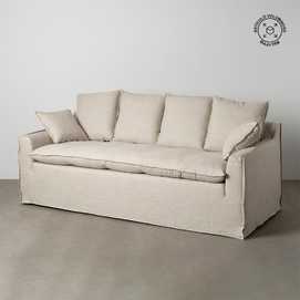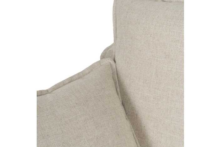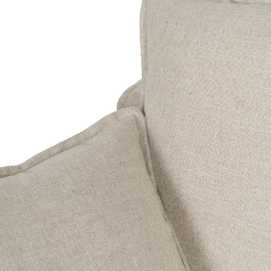 ESTRUCTURA: PINO MACIZO Y AGLOMERADO BASE: CINCHA ELÁSTICA. PATAS: MADERA. MODELO DESENFUNDABLE. ALTURA ASIENTO: 50CM. MEDIDA BRAZO: 13CM. TEJIDO: 70% VISCOSA 30% LINO GRAMAJE: 390GR/M2. NO USAR CLORO NI LEJIA SE ADMITE PLANCHA NO USAR SECADORA ADMITE LAVADO A MANO ADMITE LIMPIEZA EN SECO CON PERCLORETILENO.